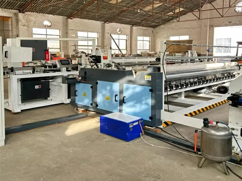 2. Bersantai & Memangkas: Mesin secara perlahan membuka gulungan besar dan memotongnya dengan lebar yang tepat untuk tisu toilet standar.